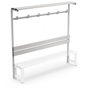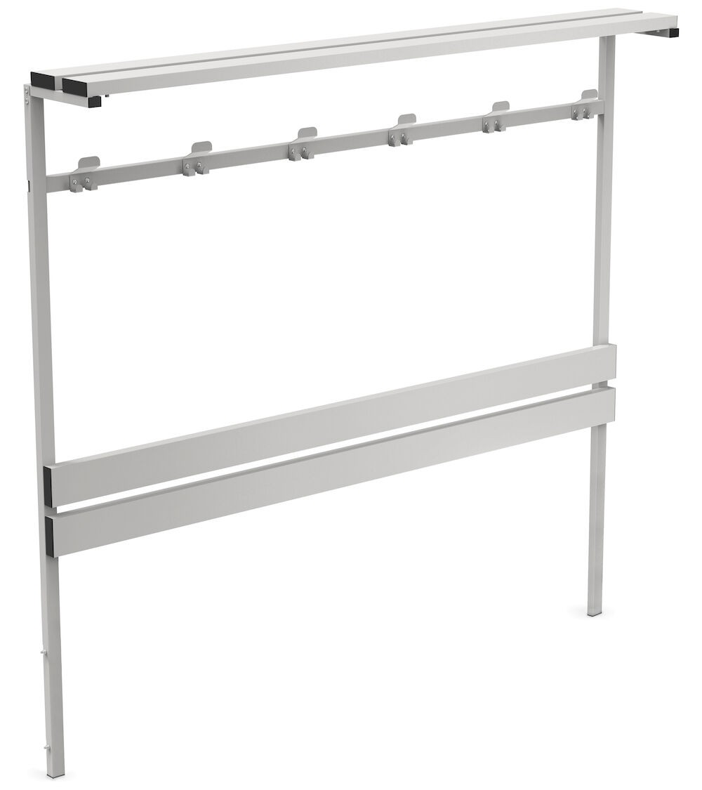 Der Rahmen wurde entwickelt, um die Funktionalität der Gardarobenbank zu erhöhen und sie in eine komplette und ordentliche Lösung zu verwandeln. Er besteht aus einer ergonomischen Rückenlehne, Kleiderhaken und Regal für die Organisation von Kleidungsstücken, Schuhen und anderen Zubehören. Die Befestigung erfolgt direkt an den Beinen der Gardarobenbank mittels Schraube und garantiert eine sichere Installation und extrem widerstandsfähige und auf lange Zeit stabile Struktur.