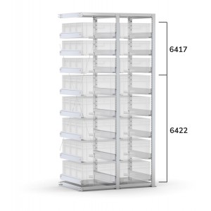 Lo scaffale con slitte vuoto aggiuntivo è una campata completa, predisposta con tutto il necessario per ampliare composizioni preesistenti. Realizzata completamente in acciaio zincato, è dotata di piani di tenuta, montanti e 16 coppie di slitte adatte per la custodia di cassette Euro Box Classic di mis. 6422 e 6417.È possibile aumentare la sicurezza nelle operazioni di prelievo del materiale installando fermi nella parte frontale delle slitte. Questi componenti sono stati ideati per evitare la fuoriuscita della cassetta, bloccandone la corsa e riducendo il rischio di caduta.
